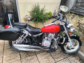 Moto custom Suzuki Marauder de 125 cc.La moto está para no gastarse ni un € , transferencia y a funcionar. Ideal para iniciarse con las marchas,a toda prueba muy mimada y funciona a la perfección,año 2007 y 25000 kmts,al día de papeles para poder transferir.Se entrega con las alforjas Yamaha ,honda ,Kawasaki,moto ,casco ,ruedas,ciclomotor