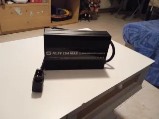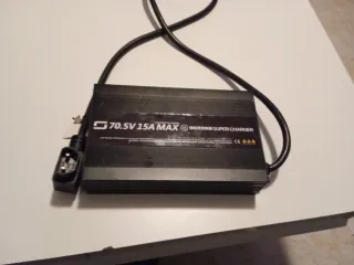 Cargador de batería para moto, modelo SUPER CHARGER. - Voltaje: 70.5V - Corriente máxima: 15A - Certificación CE