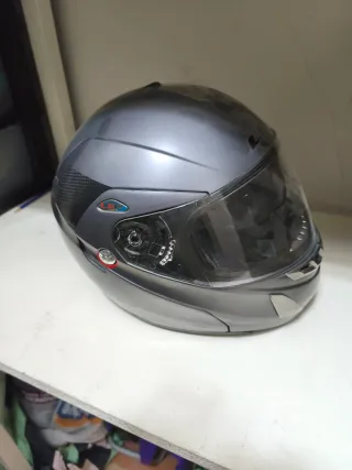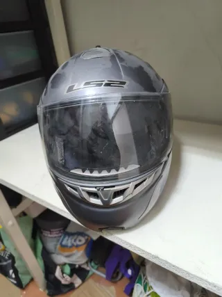 Casco de moto integral LS2 en talla M. Diseño deportivo y aerodinámico. - Color gris metalizado. - Visera transparente. - Cierre de seguridad.