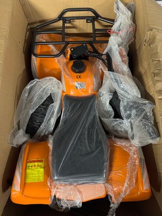 Vendo mini quad de gasolina de 49cc totalmente nuevo a estrenar, aún en su caja. Características: -Motor de 2 tiempos y 49cc (funciona con mezcla de gasolina y aceite). -Transmisión automática (fácil de manejar). -Limitador de velocidad ajustable para adaptar la potencia al nivel del niño. -Frenos de disco delanteros y traseros. -Sistema de seguridad hombre al agua - Ruedas con buen agarre. - Asiento cómodo para el conductor. - Parrilla delantera y trasera para transportar objetos.