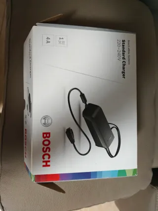 Cargador estándar Bosch eBike. - Voltaje de entrada: 220-240V. - Corriente de salida: 4A.