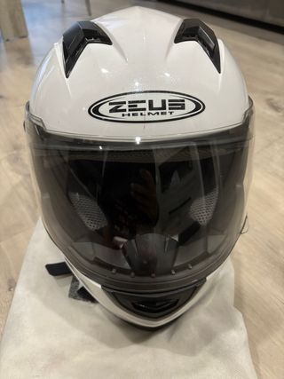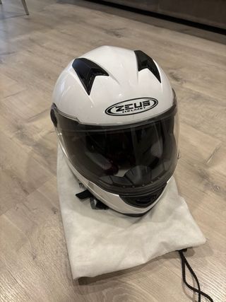 Casco de moto de la marca Zeus, color blanco brillante. Poco uso. - Incluye bolsa protectora.
