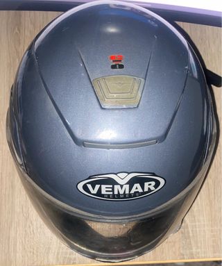 Casco de moto de la marca Vemar. TALLA M - Diseño moderno y aerodinámico. - Visera transparente. - Logo de Vemar en la parte frontal.