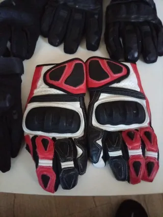Guantes de moto de piel en talla L. Diseñados para ofrecer protección y comodidad. - Material principal: Piel. - Color: Rojo, blanco y negro. - Cierre ajustable en la muñeca.