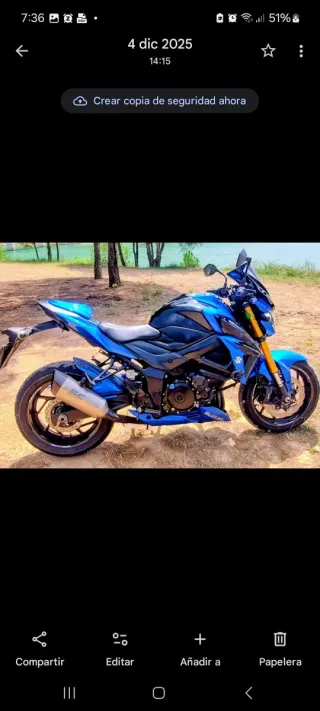 Moto Suzuki gsxs 750 114cv casi 2000 euros en extras. Diseño moderno y líneas agresivas.exclusiva no verás otra igual, ruedas nuevas, puños calefactores, escape SC projet homologado, filtro de aire potencial, itv recién pasada, muy cuidada, siempre en parking, 40.600 km. Baul trasero givi, entrego escape de origen y asiento trasero. Precio negociable. La vendo porque tengo 64 años y quiero algo más acorde a mi edad. - Chasis robusto. - Ruedas de aleación. - Escape deportivo.