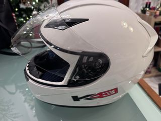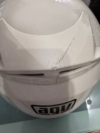 Casco de moto AGV K3 en talla XS. Presenta algunas marcas de uso. - Color blanco. - Diseño deportivo. - Pequeño golpe en parte trasera superior - Interior extraíble y lavable