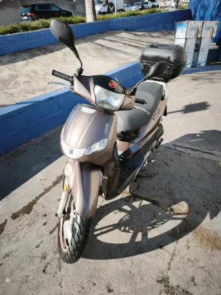 Scooter Peugeot Tweet 125cc en color marrón. Un modelo elegante y práctico para la ciudad. - Diseño moderno y estilizado. - Asiento cómodo para el conductor. - Parrilla trasera para equipaje. - Año 2017. - 17.500km. - Guardada en garaje. - Solo uso para ir a trabajar. - ITV vigente hasta Marzo 2027. - Revisiones al día.