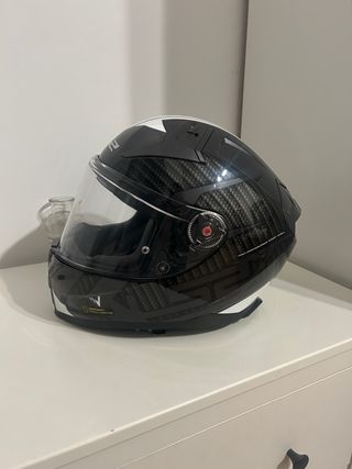 Casco de moto LS2 Vector II en talla S. Presenta un diseño moderno con acabado en fibra de carbono. - Poco uso. - Cierre de seguridad. - Visera clara. - Interior cómodo.