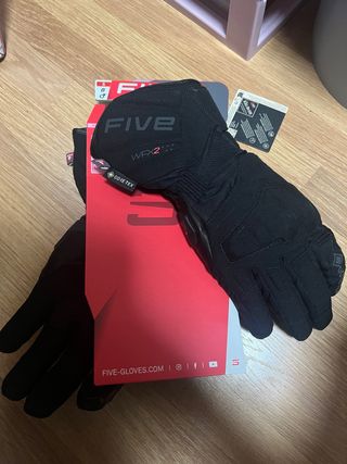 Guantes de moto de la marca Five, modelo WFX2 Evo GTX. - Talla S. - Tecnología GORE-TEX. - Color negro. Comprado el día 13 de diciembre del 2025 , lógicamente sin utilizar , muy buen guante de invierno con Gore-Tex para proteger del agua y membrana Primalof para dar calidez a la manos , buena marca de guantes y buen modelo.