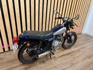 Moto Yamaha SR 250 Classic en color azul y plata. Un modelo icónico con un diseño atemporal. - Depósito de combustible bicolor. - Asiento negro acolchado. - Ruedas de radios. - Faro redondo clásico. - 20.000 km