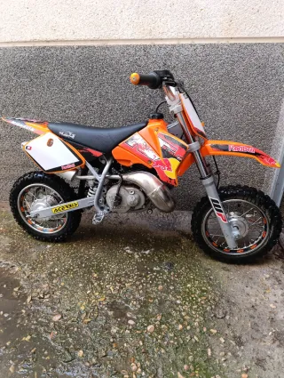 Moto de cross KTM SX 65cc en color naranja y negro. Ideal para jóvenes pilotos. - Modelo SX 65. - Cambio manual. - Color naranja. - Ruedas de tacos. - en perfecto estado -caja de 5 velocidades -entera de serie -llanta delantera 14 -llanta trasera 12 -mantenimiento al dia -suspensión trasera wp