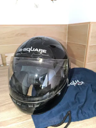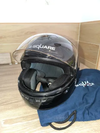 Casco de moto B-SQUARE. - Color negro brillante. - Visera transparente. - Interior acolchado. - Mentoneras desmontables para lavarlas