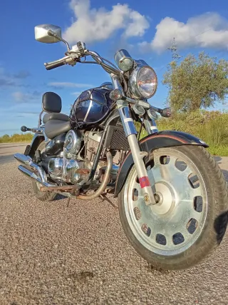 Moto custom cruiser ideal para ciudad y carretera tranquila. Actualmente tiene 10.500 km aprox. (puede variar porque la sigo usando). ITV hasta noviembre de 2027 Neumáticos Pirelli con muchos km por hacer Extras incluidos: Retrovisores en negro mate, más estéticos y con mejor visibilidad que los originales Respaldo para pasajero Alforjas prácticas y con buena capacidad Reloj instalado en el manillar Mantenimiento al día y lista para circular. Cómoda, estable y fácil de llevar. Perfecta como primera moto o para el día a día. Consumo súper bajo. La vendo para subir de cilindrada El precio es negociable. Se puede ver y probar.