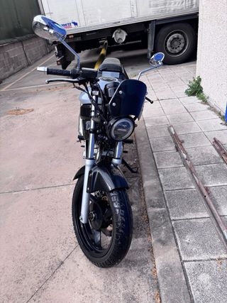 Moto estilo naked con un diseño llamativo. 14.000 km *Cauchos Buenos *Relación de Rodaje Buenos *Frenos nuevos (en la venta va incluido 1 juego de pastillas de freno nuevas) *Le funcionan todas sus luces. *Encendido automático Tiene sus 2 retrovisores. El Baúl va de Brinde. Lista para transferir. Tenia ITV y seguro hasta 2025 (Actualmente está sin) Está en mi garage no estoy usando. Funciona perfectamente. El banco está recién tapizado Está higienizada y limpia desde el cuadro chasis hasta el tanque de gasolina. Revisión de carburador. Todo revisado.