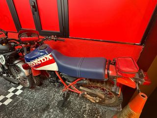 Moto Honda XL 200 Paris Dakar, estilo trail. AÑO 1986 - Diseño icónico con colores rojo, blanco y azul. - Asiento azul. - Incluye portaequipajes trasero con bolsa roja. Motor arranca(falta tobera de carburacion) Sin ITV esta para terminarla. Cambio por algo que me interese + o - diferencia