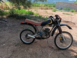 moto de los años 80 ,la moto lleva parada un Año le hace falta limpiar el carburador y está fiera volverá a estar de nuevo dando guerra,tiene neumático delantero Nuevo, motor de 75cc y carburador amal 18 con matrícula azul,la compré para restaurar pero por motivos personales no puedo,lo mejor es que tengo la documentación que en estas motos es súper difícil. no cambios
