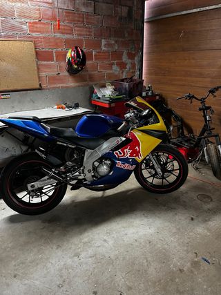 Precio algo negociable Moto deportiva Derbi GPR 50 Racing del año 2004. Es la moto ideal para cualquier joven que tenga el AM la moto va perfecta cosas que tiene : 74 airsal de 1 segmento tiene 1500 km y 400 de rodaje , carburador 24 oko , laminas de carbono cigüeñal nuevo también tengo factura retenes nuevos también etc también lleva un escape tavi de la época q sale por la derecha. Es ideal para empezar en el mundo de las motos . Tiene varias piezas nuevas en privado las digo También doy piezas de serie para itv aunque ya la tiene hasta 2026 cosas que doy : escape de serie alguna bujia carburador de serie 14 dellorto y tendria