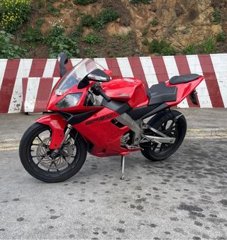 Moto deportiva Derbi GPR50 en color rojo. Recién pasada la ITV. - Tubo de competición incluido. - Transmisión manual.
