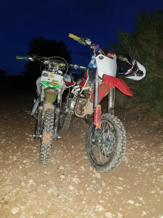 Moto Rebel Master 125cc 4 tiempos. - Se vende por falta de cilindrada - Es del 2015 - Se vende o se cambia por otra moto- - Sele acaba de cambiar el motor (es el motor negro de las fotos y esta montado y listo para correr) - Las ruedas estan a mitad de uso - ¡EXTRAS! Radiador de aceite, Cubre manillar Rebel master en negro y amarillo, Rueda trasera a mitad de uso - Se vende porque se me queda pequeña ya -Lo unico que esta para cambiar son los plasticos -¡No MALEANTES!!! - Lo que me interesa: Ktm sx 125 2t , Sherco 125 2t ,Ktm 85 2t , derbi senda 49cc rieju rr 49cc etc.. (Motos 2t)