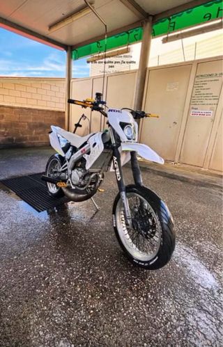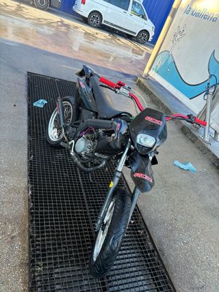 Moto de 50cc estilo supermotard con cambio manual. - Diseño deportivo en negro y amarillo. - juego de ruedas sm - juego de ruedas de cross - piezas de serie - carburador 21 - voca 50/70 “negociables”