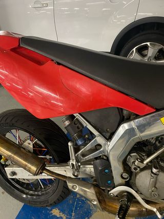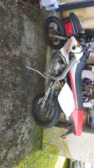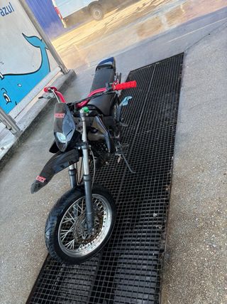 Moto Derbi Senda con ruedas de super motard y tacos, la moto va perfectamente, intermitentes luces claxon... de plásticos esta bastante bien y de motor no tiene fallo. La entrego con el motor aparte porque lo quité para prepararlo y luego volver a ponerlo pero por falta de tiempo no esta puesto. Preguntar sin compromiso