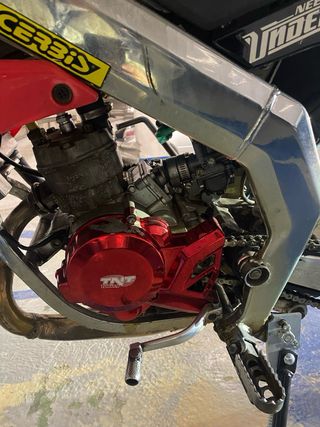 Derbi Senda R con motor de 50cc. Tiene el cilindro gripado tiene todo los mantenimientos cambio aceite embragues recien puestos -lleva motor €3 -21 pwk -escape por arriba yasuni -Instalación a batería luces -manillar 28 protaper más torretas protaper -suspensiones al detalle -frenos perfectos al tacto NO TIENE PAPELES Alguna duda me llamais al telefono: 641727481