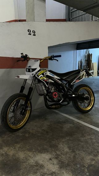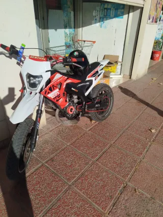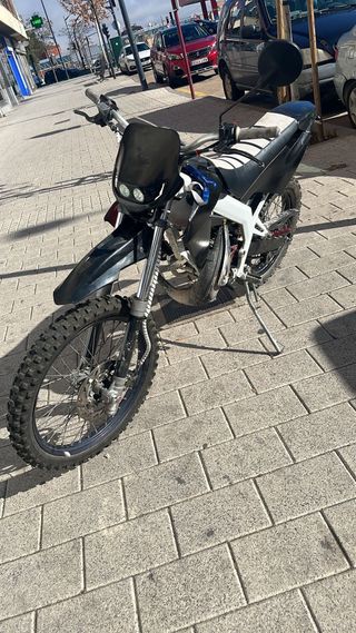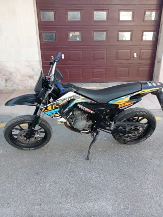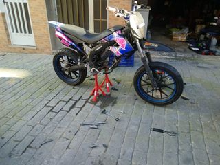 Moto Derbi Senda X-xtrem en estilo supermotard. - Moto con caja de cambios manual. - Rodamietos recien cambiados - tapa embrague recien cambiada -Esta montada un 74 -Cigüeñal metrakit pro race 3 -carburador 26 oko - cuenta km digital - Careta led Dudas ponerse en contacto