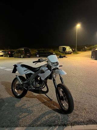 Derbi senda sm xtreme La moto debe llevar tres años parada, se paro funcionando. Lleva un airsal 70, carburador 21 y escape yasuni cross. Tengo una instalación original entera para montar. Ruedas nuevas. Esta matriculada, esta tal cual las fotos.