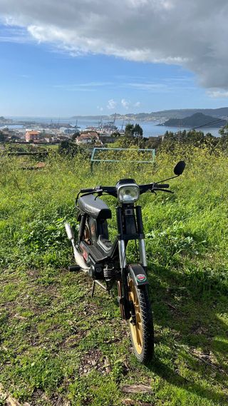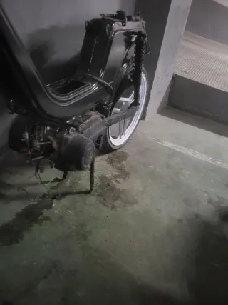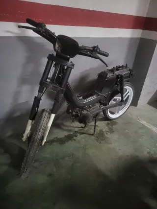 Se vende o se cambia por otra de más cilindrada arranca al toque papeles al día menos ITV i seguro monta 65 barikit, carburador 16 amal i tubo de escape replica metrakit,con casquillos tjt el cilindro va en rodaje falta pintar alguna zona del chasis i guardabarros sillón una rajita precio fijo no mareantes la quieres más barata busca otra - Diseño retro. - Asiento negro. - Ruedas negras.