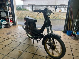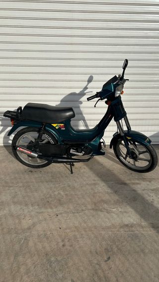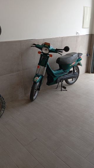 Derbi Variant Sport World Champion 49cc de 1989. Sólo 3058km reales. Ha estado mas de 30 años tapada en un garaje. Enciende a la primera. No tiene documentación y no se llegó a matricular. Color negro con detalles dorados y rojos. Intermitentes traseros originales restaurados y entrego 2 mas restaurados. Tubo de escape Biturbo***. . Ciclomotor 100% de serie y sin ninguna modificación, excepto el escape. Luces e intermitentes funcionando. Depósito, carburador y manguitos limpios para la puesta a punto. No tiene óxido. No acepto intercambios ni contesto a ofertas absurdas. Preferiblemente entrega en mano.