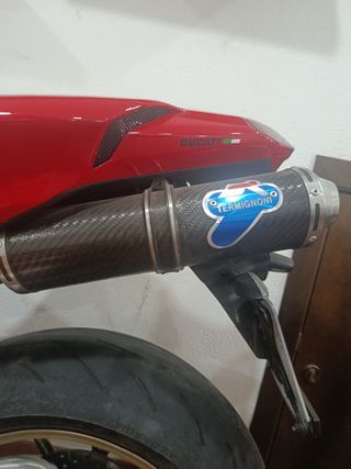 - Escapes Termi homologados que pasan ITV. - Varias piezas en carbono - Amortiguador de dirección Ohlins. - Botes de fluidos Ducati Performance. - Tornillos bujes CNC en aluminio amarillo. - Rueda trasera nueva y delantera al 50%. - Al día de aceite y filtros. - Kit de arrastre en perfectas condiciones. - Batería Yuasa original nueva. - 17.000 km. Octubre 2015. - No hay que hacerle nada. - Casi 5000 euros en extras. - Se entregan piezas originales - Se acepta cualquier tipo de prueba, incluido servicio oficial. -Moto en perfectas condiciones,ni un rasguño, solo usada de forma ocasional.