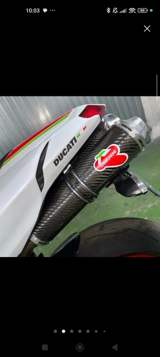 Se vende por paternidad. Moto practicamente nueva,solo rutas los fines de semana. Extras de carbono Desconectador de bateria Tubos termigioni con db killers. Amortiguador de direccion de serie. Cupula doble burbuja. Acondicionada para piloto de 180 cm y 80 kg de peso. Se regala casco Ducati,guantes y botas del 44 a juego. Mono de cuero ( piel de canguro) de una pieza ,(piloto de 180 cm 80 kg) Mantenedor de bateria a enchufe. Juego de ruedas Pirelli nuevas. Caballete trasero y delantero. Colin para pasajero. 39.576 km Precio ligeramente negociable...😉 Para mas info,mensaje privado. La moto se encuentra en Barcelona.