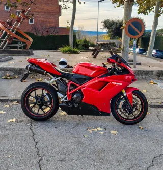 Moto deportiva Ducati 848 SBK en color blanco. - 125cv. - Año 2009. - Mantenimientos siempre en Ducati con facturas demostrables. - Neumaticos Michelin Power GP2. - 2 juegos de llaves. - Tapas de carbono. - Se entrega tapas originales, 2 cúpulas, el asiento trasero y una mochila para el asiento. - ITV en vigor hasta diciembre de 2026. - Muy cuidada y mimada. Solo garaje. NO CAMBIOS. NO MAREANTES. GENTE SERIE.