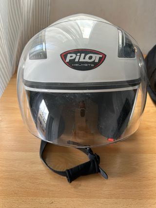 Casco de moto para scooter en talla XL y color blanco. - Marca Pilot. - Visera transparente. - Correa de sujeción ajustable.