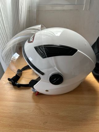 Casco de moto estilo scooter, ideal para trayectos urbanos. Diseño moderno y seguro. - Visera transparente. - Cierre de seguridad. - Interior cómodo y acolchado y