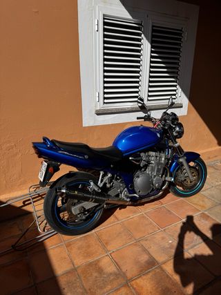 Suzuki GSF Bandit 600 en color azul. Limitada para el a2 en papeles 😉 Vendo mi bandit por cambio de cilindrada. Necesita un poco de amor pero lo principal está echo. Lleva neumáticos nuevos que no tienen ni 500 km, embrague nuevo, pinza trasera de freno nueva, mas disco trasero mas pastillas nuevas, matricula nueva, intermitentes delanteros nuevos... Tengo el escape original. Solo tiene la cola cambiada, que le da un sonido precioso. No atiendo tonterías ni gente preguntando lo que pone en esta descripción ya. Km: 112.000 (Por mallorca más viajes largos)