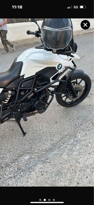 Moto BMW F 700 GS de estilo aventura. - Color blanco. - Diseño robusto y versátil.