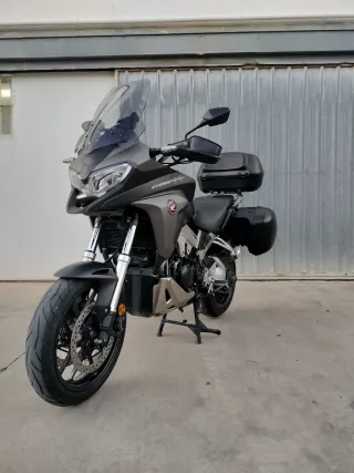 Moto Honda VFR800X del año 2017, estilo adventure. - Color negro y gris. -Matriculada en Julio 2017, con Itv hasta Julio 2027. Ha estado siempre en garaje cubierto, con tan solo 26800 kmts. Bateria y kit de arrastre con menos de 1000 kmts. Para mas informacion tecnica puedes consultar Motofichas y el modelo. La moto esta en Ibiza y se puede ver sin compromiso. De extras tiene el kit de maletas y baul trasero, caballete central y cupula touring, tambien la original. Sin roces ni oxidaciones. Si buscas una moto para disfrutar viajes ojo que estas de suerte.