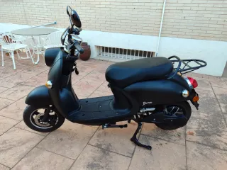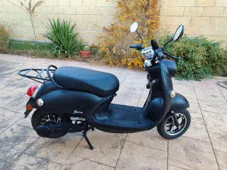 Ciclomotor eléctrico Bora en color negro. Ideal para desplazamientos urbanos. - Diseño moderno y compacto. - Ruedas de aleación. - Asiento cómodo. - Portaequipajes trasero. - Seminuevo, Febrero 2025