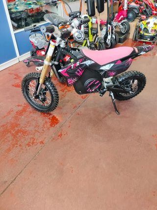 Moto eléctrica infantil con un diseño deportivo y asiento rosa. - Ideal para niños de 6 a 10 años. - Neumáticos todoterreno para mayor agarre. - Estructura resistente y manillar de fácil control.Comprada en Reyes , Precio en tienda 750€ ,tengo factura. Solo la utilizo el dia de reyes.