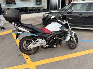 Moto Suzuki GSR del año 2008, con una combinación de colores blanco y rojo que le da un estilo único. Muy cuidada totalmente de serie menos la visera. Entrego con itv recién pasada. Lista para rodar. 34000km. Todo al día ruedas, aceite, filtros,frenos,kit de cadena. Algo negociable. - Diseño deportivo. - Asiento en dos tonos. - Maleta trasera incluida se quita facil.