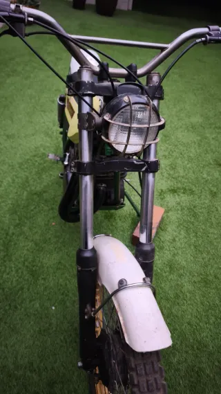 Vendo por abandono de proyecto Ossa Explorer de época. Una moto clásica con un diseño distintivo. No tiene documentación. - Color de la gasolina: crema. - Guardabarros delantero y trasero blancos. - Ruedas con llantas doradas.