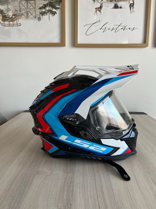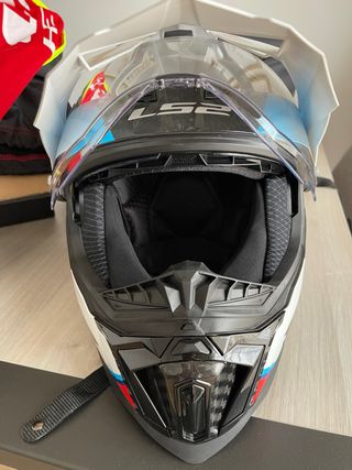 Vendo casco Adventure/Trail LS2 MX701 Explorer, versión HPFC (calota de fibra de vidrio de alto rendimiento, mucho más segura y ligera que el plástico). Homologación ECE 22.06. Talla: S Material: Fibra de vidrio (ligero y muy resistente). Ventilación: Sistema de flujo de aire dinámico, excelente para rutas mixtas y off-road. Visión: Gran campo de visión periférica, incluye visor solar interno y cierre de seguridad de liberación rápida. Estado: Muy cuidado, interiores desmontables y lavables.