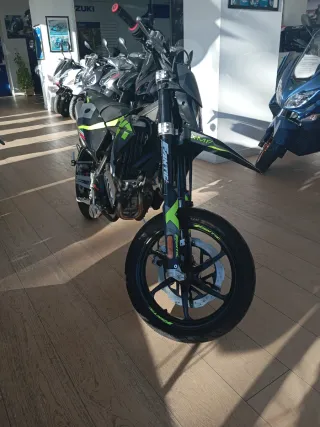Matriculada en sept. 2019 10300km Motor monocilíndrico 125cc 4t 15cv carburación Refrigeración por agua 6 marchas Doble escape Arrow Frenos delantero y trasero con pinzas Brembo Bybre ABS desconectable 130 kg en vacío Capacidad deposito 12L Altura de asiento 845mm Moto muy manejable y divertida para principiantes que comienzan a andar en moto y que cuenta con una estética que destaca por donde pasa. Está equipada con neumáticos mixtos Mitas que permiten disfrutar también fuera de la carretera. Vendo por falta de uso y cambio de cilindrada. La moto es arrancada y se le da una pequeña vuelta de vez en cuando. 1ª ITV pasada feb.25