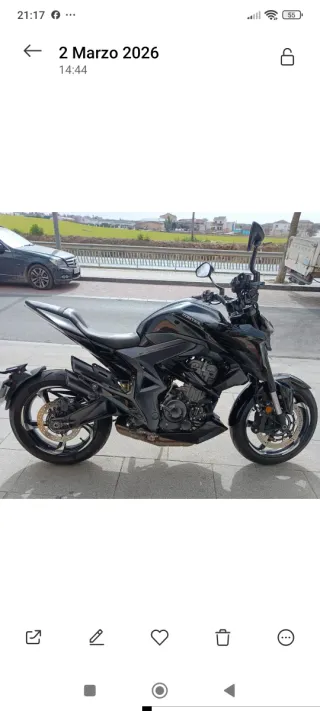 Con 5 meses y solo 180 km. Está nueva como las de concesionario todavía conserva algunos plásticos puestos . Moto para el carnet A2 con limitacion. Me costó 4700 más 300 de matriculación osea 5000 euros Quien la compre es como estrenar una como las de concesionario pero por 1000 euros menos. Tiene: Embrague antirrebote, ABS 9.1,disco delantero , modos conducción, control electrónico de presión y temperatura de neumáticos, iluminación full led, pantalla alta definición TFT full color LCD, función screen mirroring con bluetooth, doble toma USB, 2 llaves electrónicas, mandos retroiluminados, cierre centralizado asiento y deposito