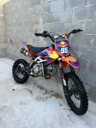 Pitbike Malcor 160cc con diseño deportivo. Mantenimiento recién echo, con reglaje de válvulas, cambio de aceite y filtros. Perfecta para disfrutar - Ruedas todoterreno. - Decoración Red Bull. - Número 95 en frontal.