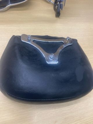 Bolso de depósito para moto con un acabado negro brillante. - Diseño moderno y llamativo. - Material resistente y duradero. - Cierre de cremallera.