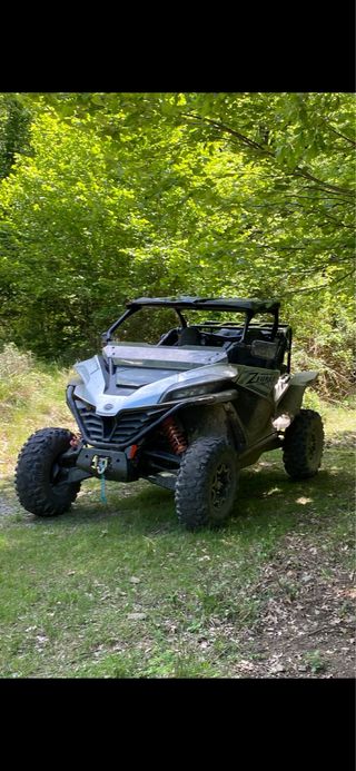 Buggy CFMoto Zforce 1000 Sport matriculado el 2022 con 8.600 km. Con extras como baúl trasero con depósitos de gasolina adicionales, parrilla porta bultos trasera, parabrisas delantero, tapas de ambas puertas, etc. En perfecto estado. Revisión hecha el 29.12.25. Asientos deportivos con arnés, cabestrante delantero, enganche homologado, ruedas delanteras nuevas y traseras semi. Precio algo negociable si hay interés real. Solo venta, no cambio por nada. - Modelo Zforce 1000 Sport. - Año de fabricación 2022. - Kilometraje: 8.600 km.