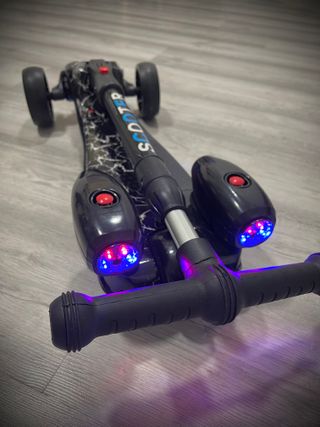Vendo scooter para niño totalmente moderno ideal para tu pequeño, cuenta con las siguientes características: - Tiene luces - Sale humo en la parte de atrás - Tiene bluetooth - Color negro