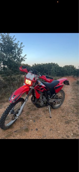 Moto en buen estado. Perfecta para rutas e iniciarte en el trial-enduro. Mantenimientos al dia, arranca a la primera y va fina. No me ha dado problemas. ITV pendiente. Documentación en regla. Plásticos en buen estado. Rueda delantera y pastillas con pocas horas. El cuentakilómetros no funciona.